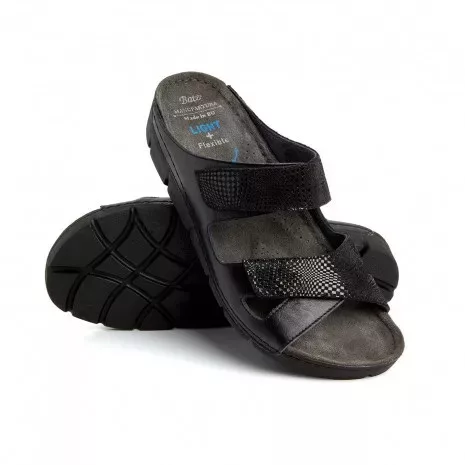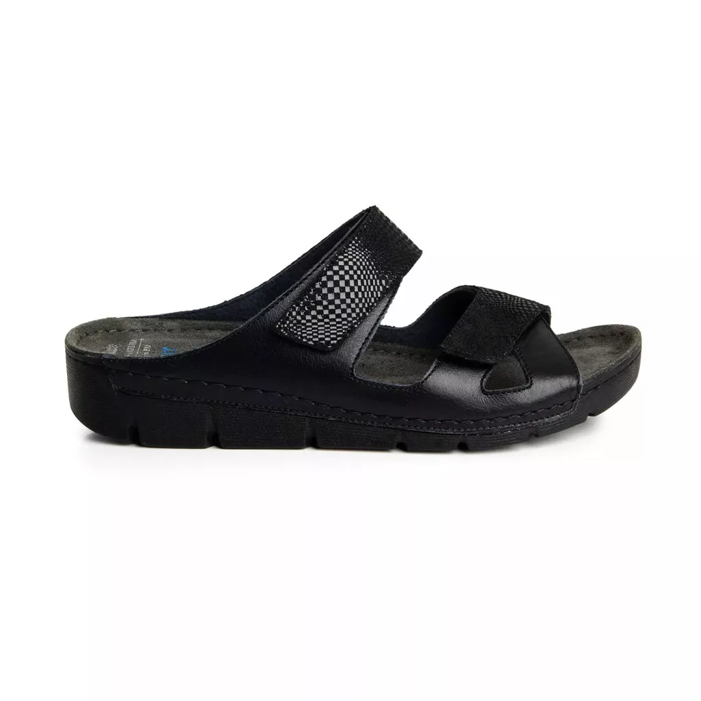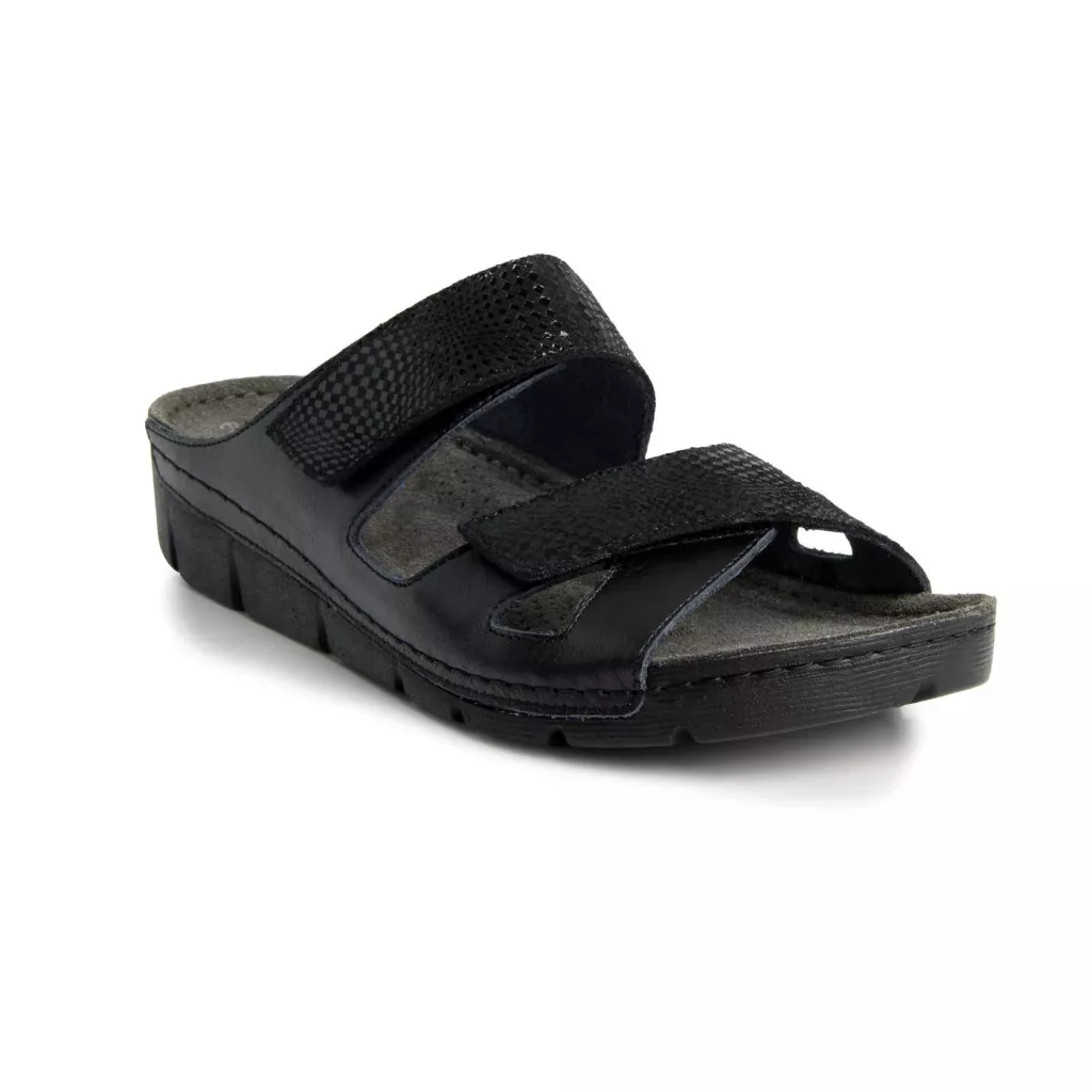 Valódi bőr és textilbetét kombinációja· Extra könnyű, rugalmas talpszerkezet· Cserélhető talpbetét· Csökkentheti a bütyök okozta kellemetlenségeket.