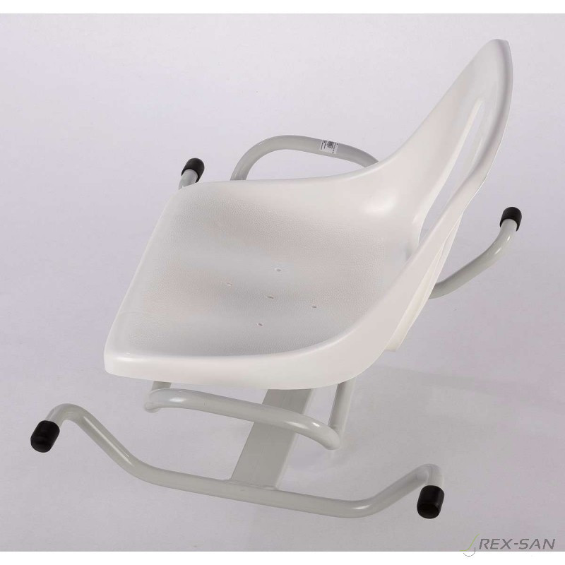 Az RS-42 kifordítható fürdőkád ülőke használata kádban ülve a tisztálkodás kényelmes elvégzését szolgálja. Olyan mozgáskorlátozott betegeknek ajánljuk, akik önellátásra csak segítséggel képesek A termék egy hegesztett acélváz szerkezetre épülő műanyag ülőke, mely a kádba való behelyezés után lehetővé teszi az egyszerűbb ki-be szállást, azáltal hogy a váz a beépített csapágy segítségével körbe forgatható és negyedfordulatonként rögzíthető. Előnye, hogy a beteget nem kell a kádba beemelni, mivel a forgatás során a beteg csak beül az ülőkébe, lábait vízszintbe emeli, s a befordítás, majd lerögzítés után a tisztálkodás könnyen elvégezhető.