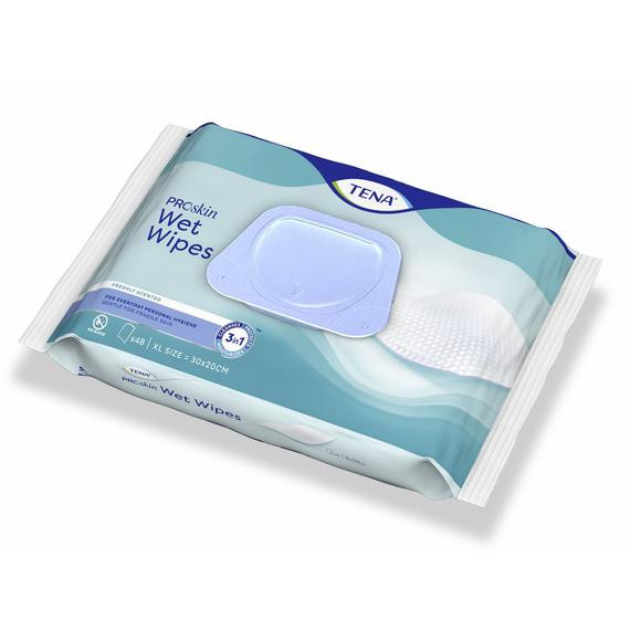 A nagyméretű TENA ProSkin nedves törlőkendő a legsérülékenyebb bőrt is tisztítja, védi és hidratálja. A méretének köszönhetően napi használat mellett ez a nedves törlőkendő ideális az intim terület tisztán tartásához az inkontinenciatermékek cseréje, illetve a teljes testfelület megtisztítása során. A szappant és a vizet kiváltó, bőrkímélő hatású TENA ProSkin Nedves törlőkendő hozzájárul ahhoz, hogy a bőr friss, tiszta és kellemes illatú maradjon. Kényelmes műanyag tetejének köszönhetően az egykezes adagolás is egyszerű. 3 az 1-ben összetétel tisztítja, ápolja és védi még a legérzékenyebb bőrt is.
